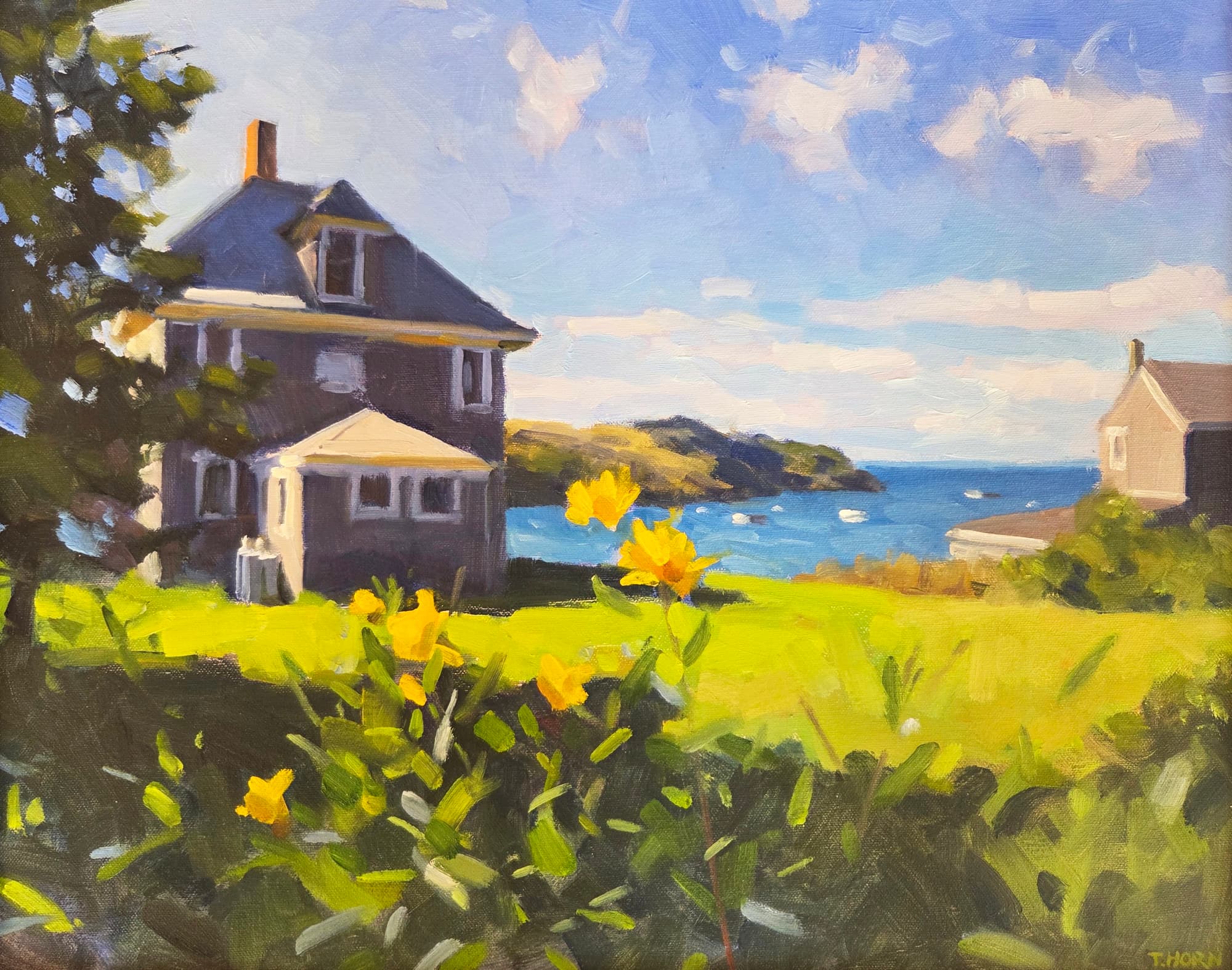He now paints full-time and lives in the the small town of Fairfax where he is drawn to the everyday scenes of the rural areas in Marin and Sonoma Counties — the old buildings that have evaded development, the workings of ranch life, the old cars and trucks that continue on, or sometimes simply the play of light and shadow across planes of weathered color. Horn wants to create paintings that tell his story, that express his observations, “paintings that feel 100% Me”.