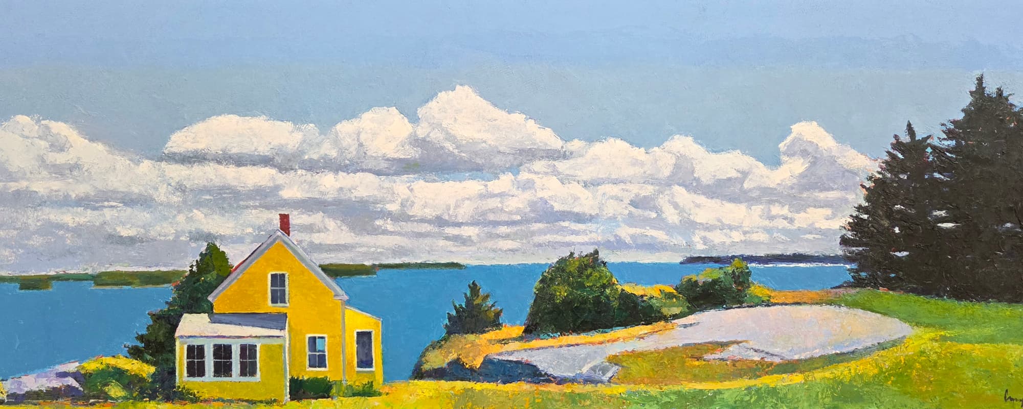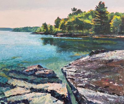 Curry’s path then took him to Maine, where he says about his life, “I still can’t believe how gorgeous it is; it’s serene but disheveled; it’s raw and not overly organized.” To those of us who are passionate about Tom Curry’s work, we cannot help but notice his accomplished technique, his ease in presenting his vision, and how he supercharges the brightness that makes one sense the “wildness and joy” inherent in living in Maine. Curry is at heart a plein air pastel artist and an accomplished oil painter. He is most at home on a hillside, perched over a Maine harbor, often sitting on a fieldstone wall, totally focused, totally absorbed, totally engrossed in creating.